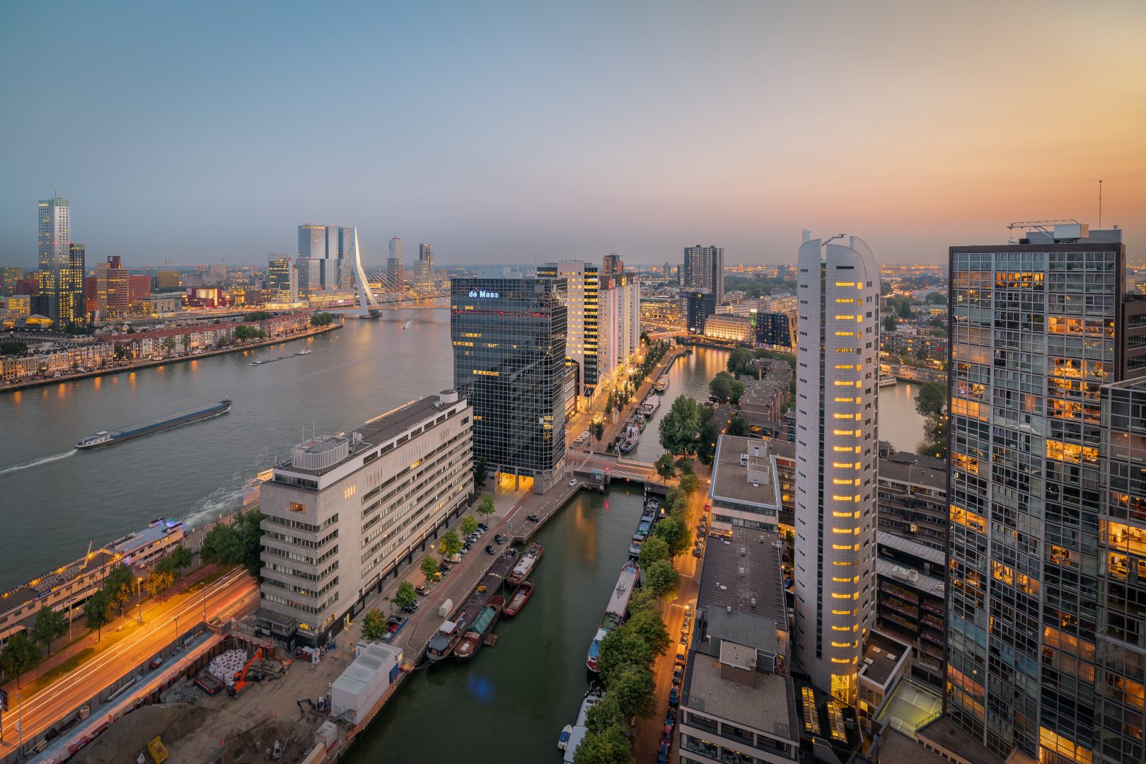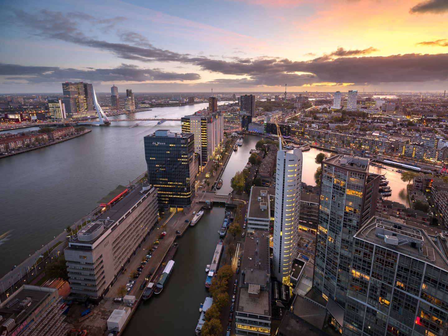 De volledige skyline van Rotterdam ervaren? Maak een romantische avondwandeling langs de Nieuwe Maas en geniet van het uitzicht. Door de grote bocht in de rivier heb je prachtig zicht op de kenmerkende skyline van Rotterdam. Hieronder tips voor drankjes met skyline view!